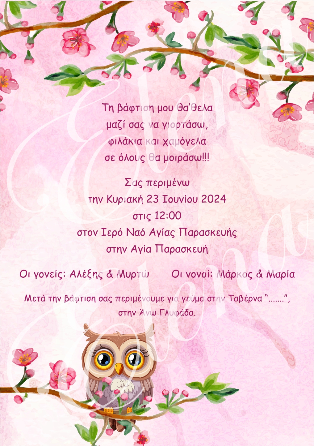 Πρόσκληση 14x17cm, μονής όψης, σε χαρτί 250gr, ματ ή μεταλλιζέ με φάκελο.