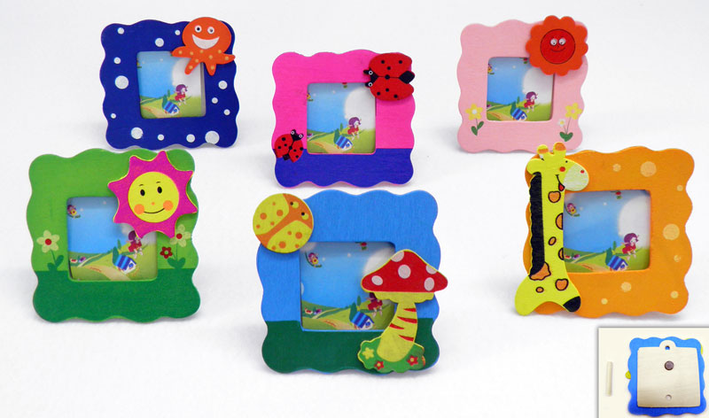 Dimensions: 10x10cm Magnet and hole to hang or wooden stick to stand